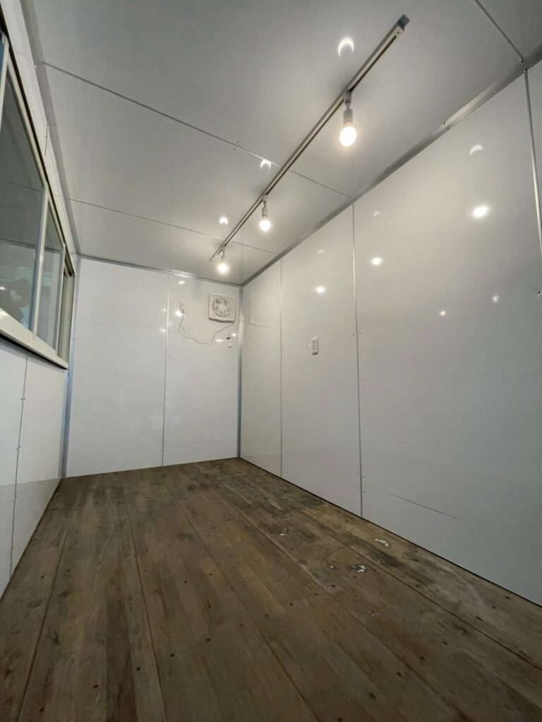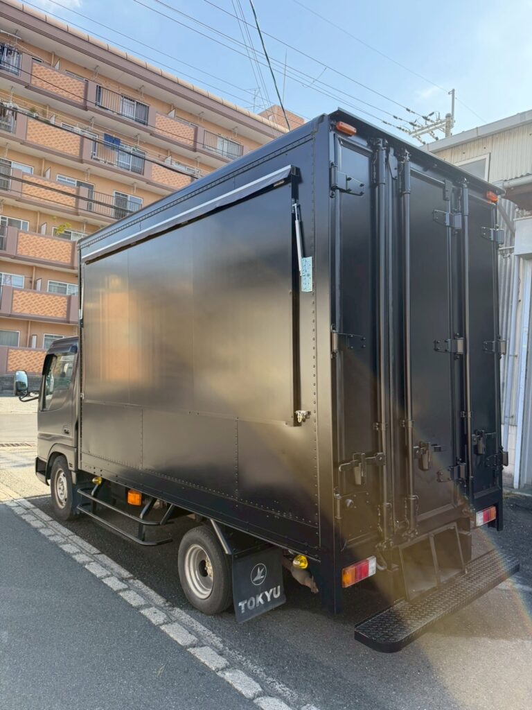 全塗装、内装工事後、未使用新品。後ろ観音開き扉。